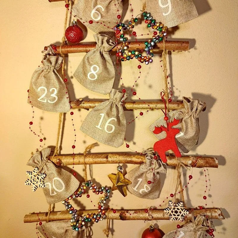 Dette gør-det-selv-sæt hjælper dig med at skabe en virkelig effektfuld juledekoration til hjemmet eller kontoret! Gør adventstiden hyggeligere for dig og dine kære. Med denne charmerende kalender bliver nedtællingen til jul endnu mere behagelig! Forbered sedler med opgaver, små gaver eller juleslik og pak dem ind i de syntetiske jute-poser, der danner en juleguirlande. Og... færdig! Nu skal I bare nyde magien ved den kommende jul!