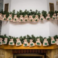 Forbered små gaver, f.eks. slik, og pak dem i poser, der danner en guirlande. En adventskalender med gaver gemt i juteposer vil gøre nedtællingen til jul mere interessant.
