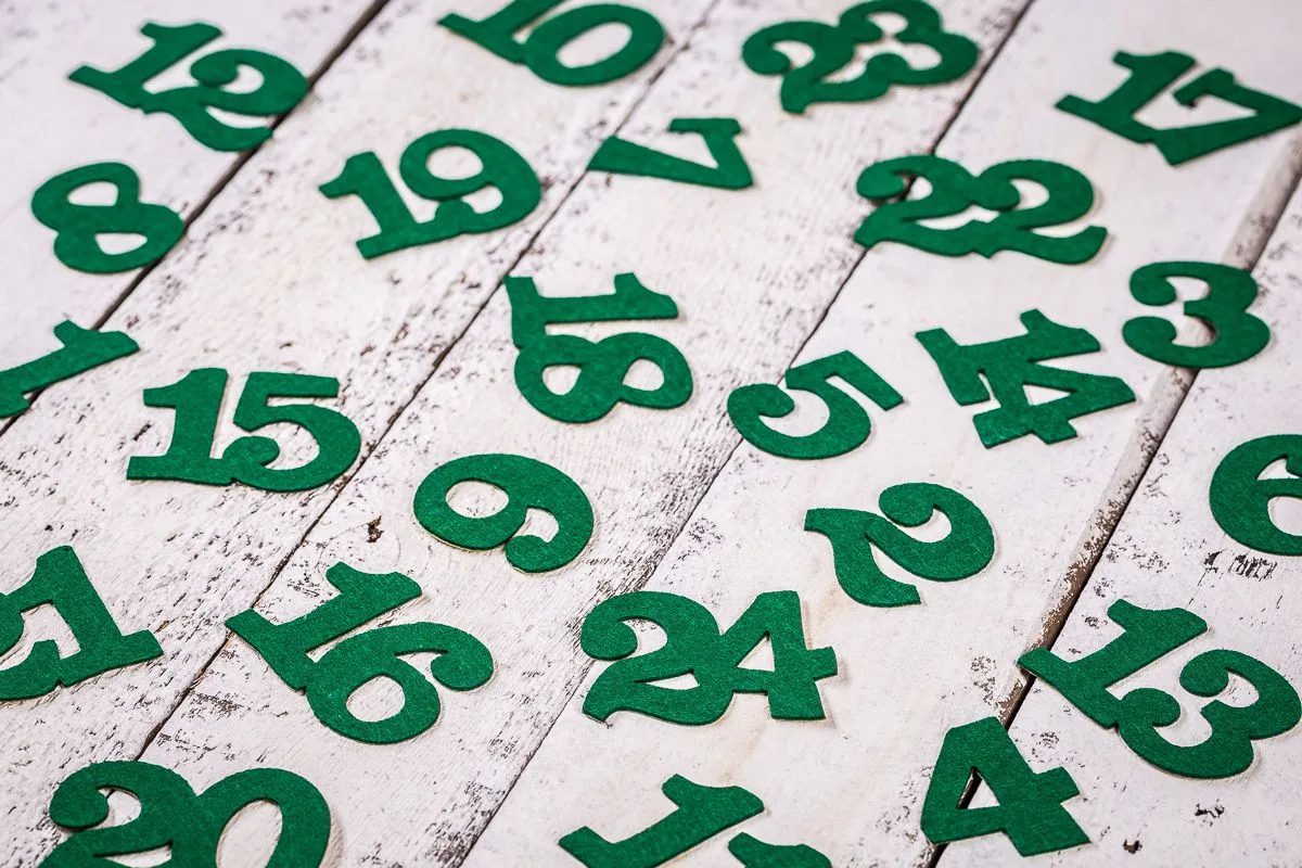 - Selvklæbende filtnumre i grønt (fra 1 til 24)