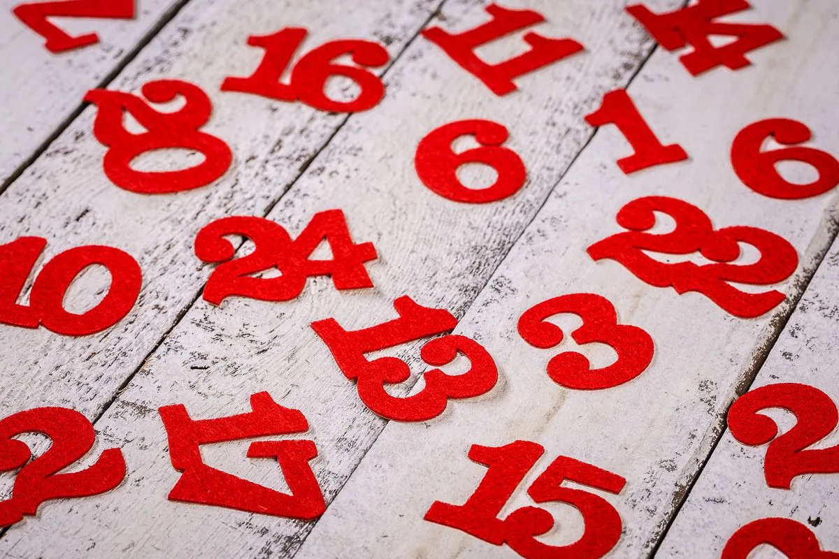 - Selvklæbende filtnumre i rødt (1 til 24)