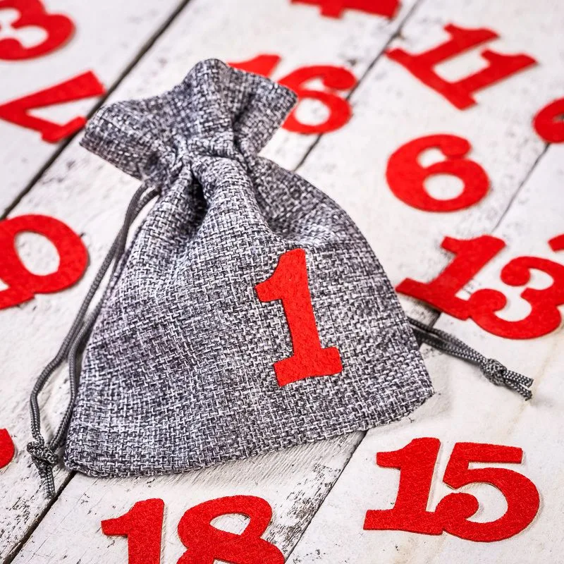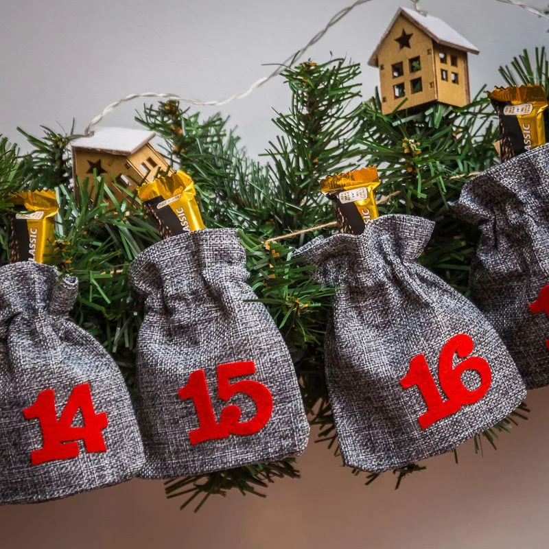 Gør nedtællingen til juleaften sjovere for dig og dine kære. Forbered slik eller andre små gaver, pak dem ind i stofposer i jute-stil. Oplev, at hele adventstiden kan være virkelig magisk!