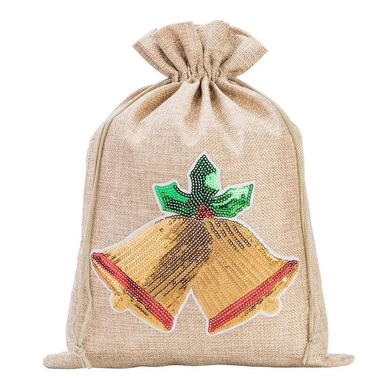 Multifunktionsposer af elegant jute i naturlig farve i størrelsen 30 x 40 cm med julemotiv. Den præsenterede pakke består af 1 stk.
