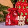 1 stk. Jutesæk med tryk 30 x 40 cm - rød / rensdyr