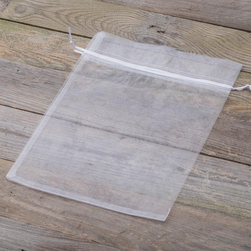 Pakke med 1 store organza-poser i hvid, der måler 75 cm x 100 cm.