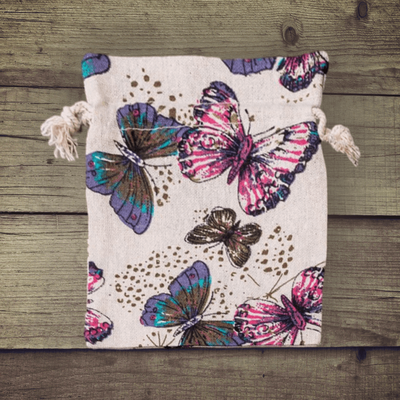 1 stk. Pose à la linned med trykt 15 x 20 cm - naturlig / sommerfugl