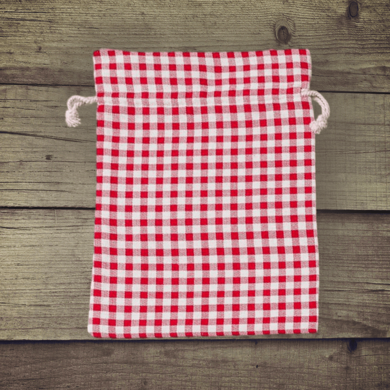 1 stk. Sæk à la linned med trykt 22 x 30 cm - naturlig / rød kontrol
