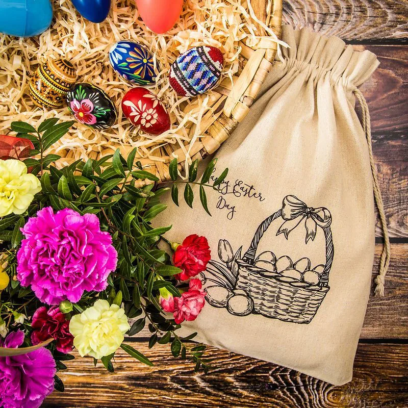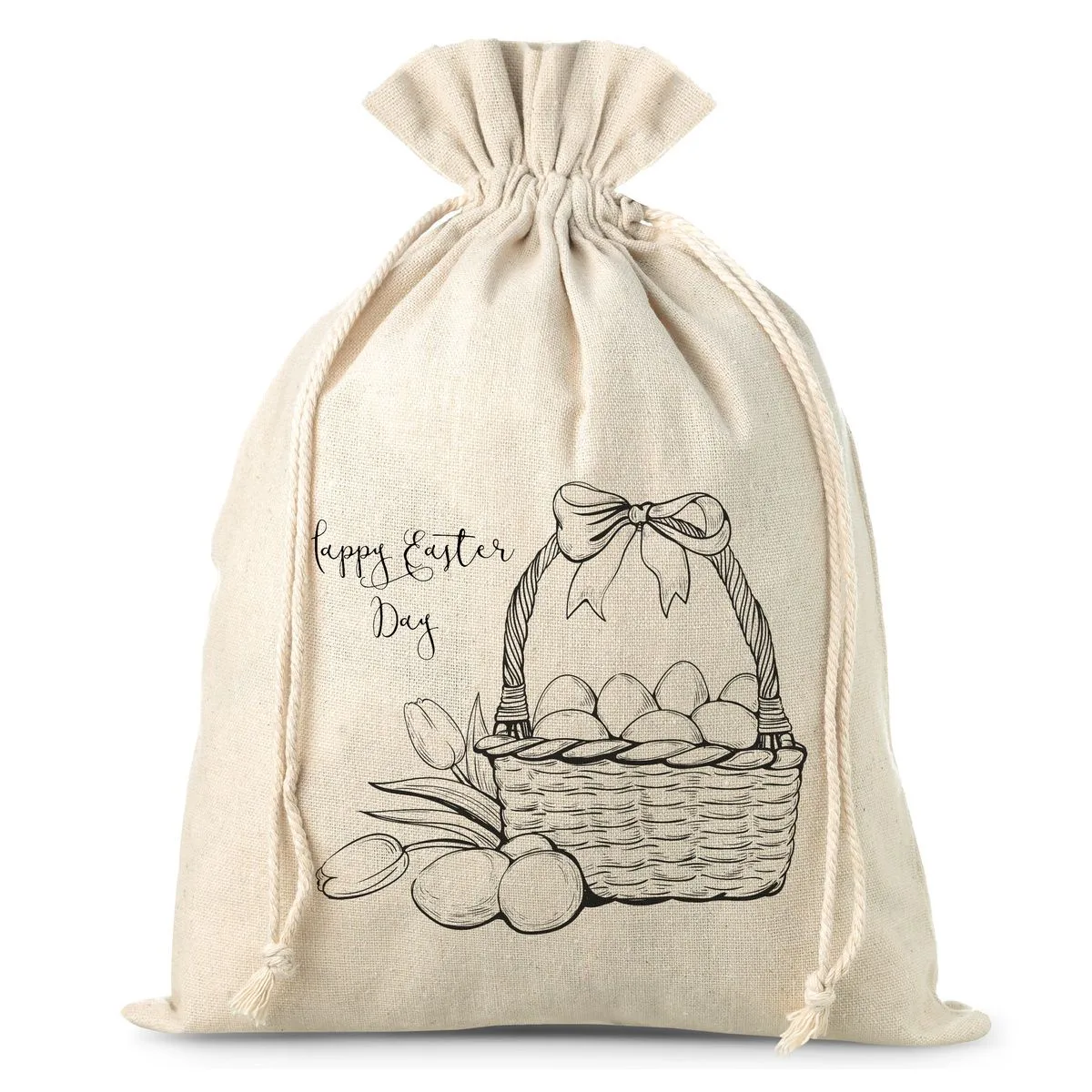 Denne naturlige linnedfarvede stofpose vil fungere perfekt som gaveemballage! Den rummelige pose kan rumme alle slags gaver fra påskeharen, og med snoretrækbåndet kan du hurtigt pakke dine påskegaver ind.