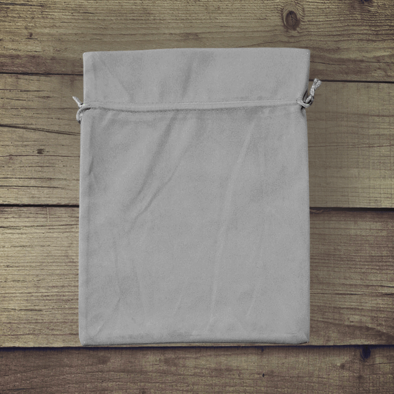 Vi tilbyder en velourpose af høj kvalitet i sølvfarve. Den præsenterede emballage måler 50 x 65 cm og er syet af behageligt og holdbart stof. Pakken indeholder 1 pose med snorlukning.