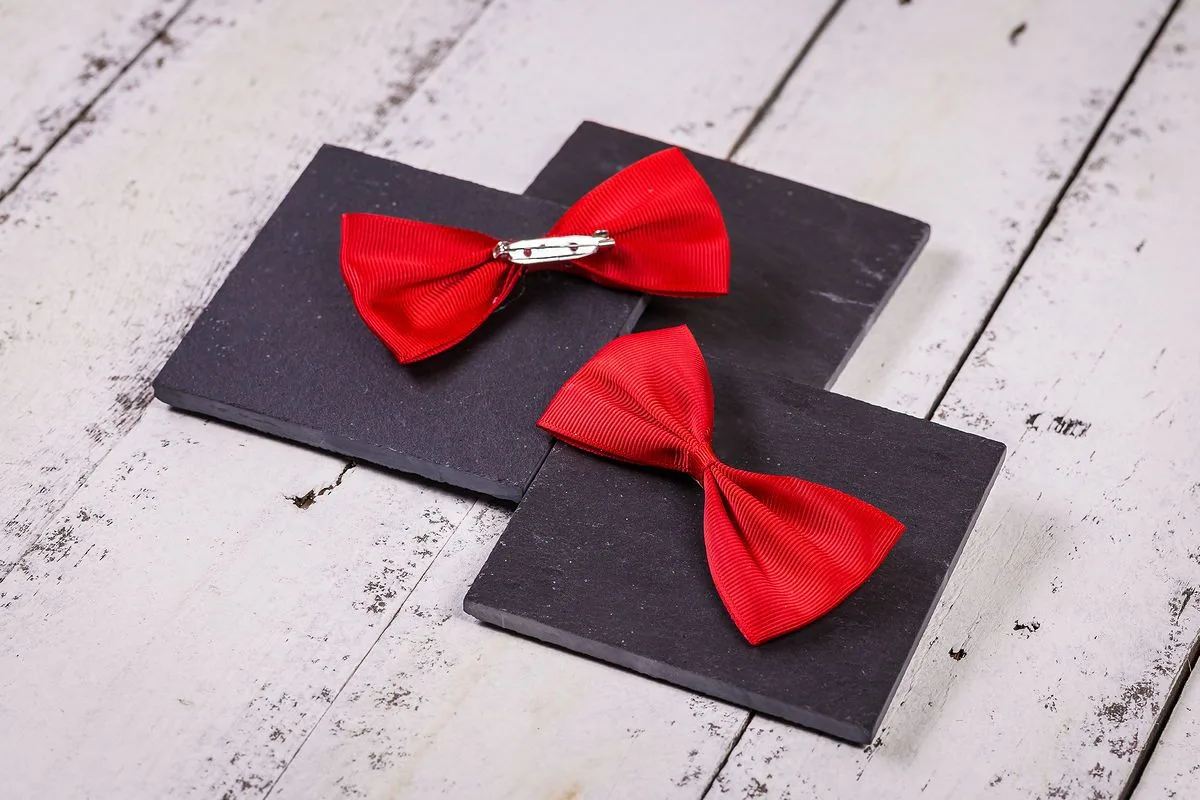 Rød stofbue med sikkerhedsnål 10 cm - 2 stk.