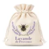 Bomuldsposer lavendel 9 x 12 cm Lavande de Provence er små, naturlige gaveposer i rustik stil - perfekte til lavendelproducenter, kosmetikbrands og butikker med gaveæsker. Sættet indeholder 10 stk. naturfarvede bomuldsposer 9 x 12 cm med dekorativ krave over løbegangen og dobbeltsnoet snor. Forsiden er trykt med en bi, lavendelkvister og teksten "Lavande de Provence", som giver poserne et tydeligt Provence-look.