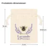 10 lavendel bomuldsposer 9 x 12 cm, natur, med trykket "Lavande de Provence"