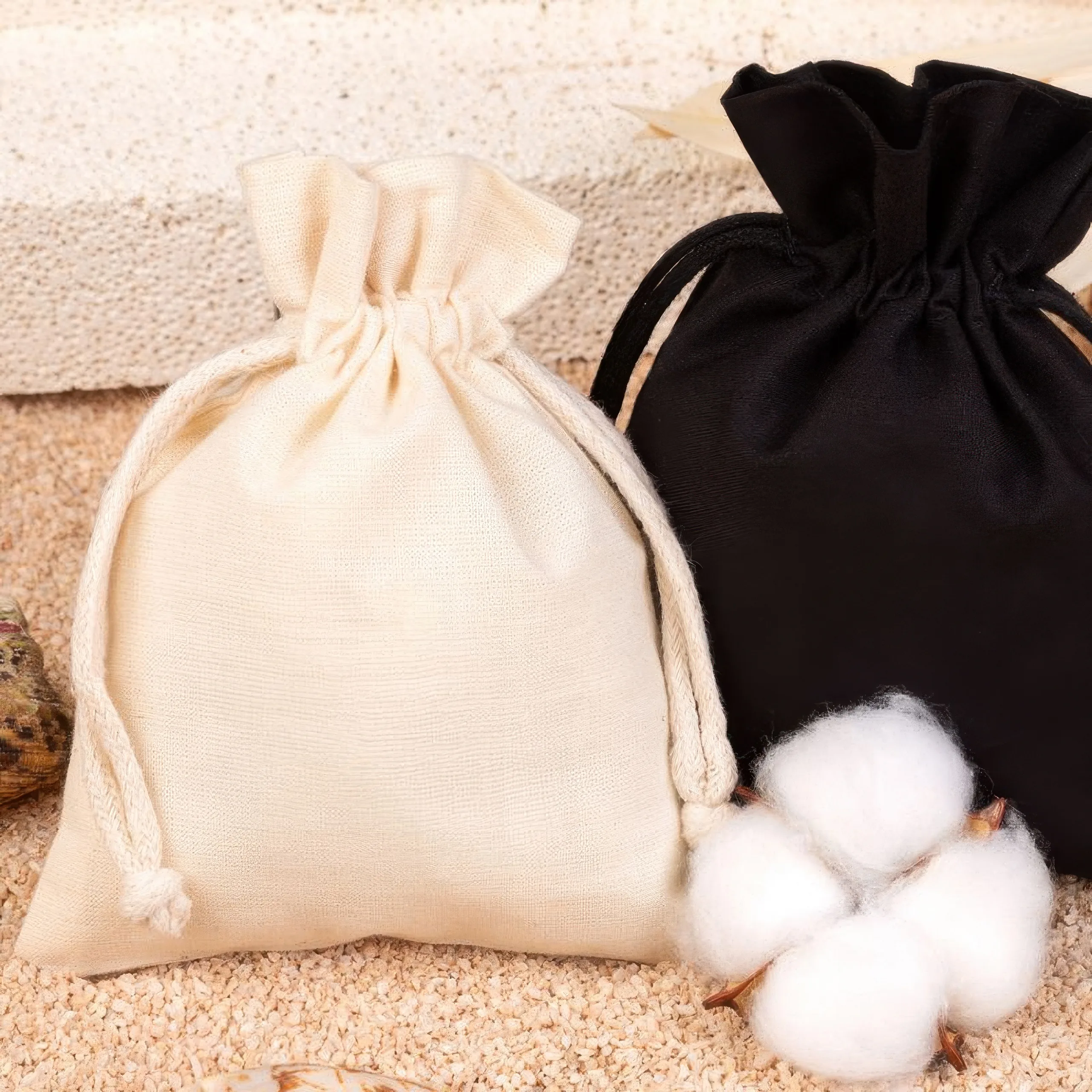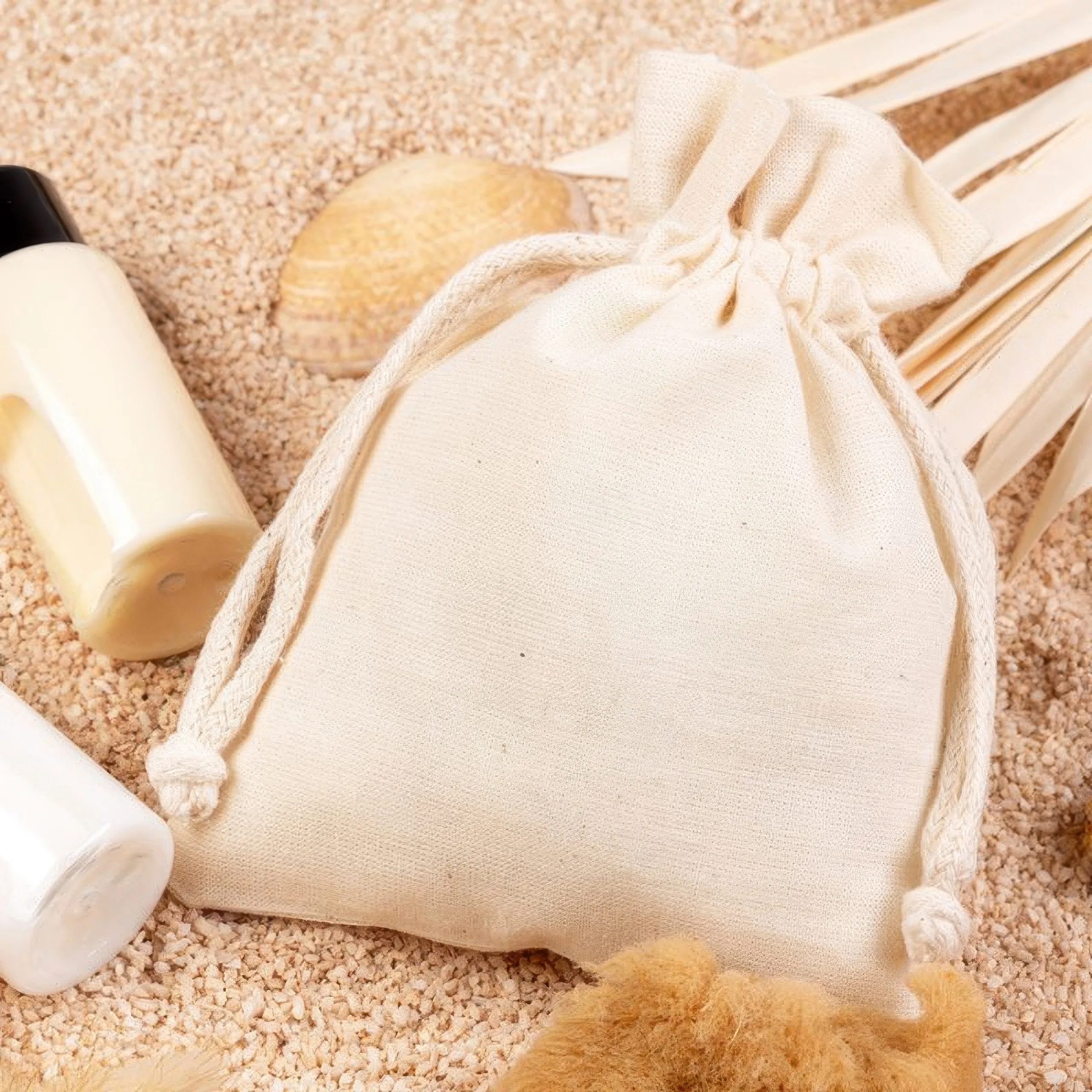 Takket være den neutrale farve og det praktiske format passer disse bomuldsposer godt til webshops, håndværksbrands og kosmetikmærker, der leder efter en enkel tekstilpose med et roligt udtryk.