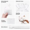 Den hvide bomuldspose er ikke kun beregnet til specielle begivenheder. Du kan også bruge den dagligt og opbevare ringe, kosmetik, mineraler eller hygiejneprodukter i den. Bomuld er et åndbart materiale, så det er også velegnet til opbevaring af undertøj - f.eks. på rejser. I bomuldposen kan du også opbevare frø, urter, te eller kaffebønner. Ved brug af posen og silica gel, sort te eller havsalt kan du også lave en hjemmelavet luftfugter, som også vil glæde med sin duft!