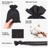 Her kan du købe genanvendelige sorte øko-poser af naturstof. De her tilbudte poser med snørebånd er syet af bomuld af høj kvalitet, så du kan bruge dem igen og igen.