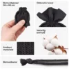 Små, men multifunktionelle poser af elegant bomuld i sort i størrelsen 6 x 8 cm. Pakken, der præsenteres her, består af 10 stk., så et enkelt køb af de praktiske poser rækker i lang tid.