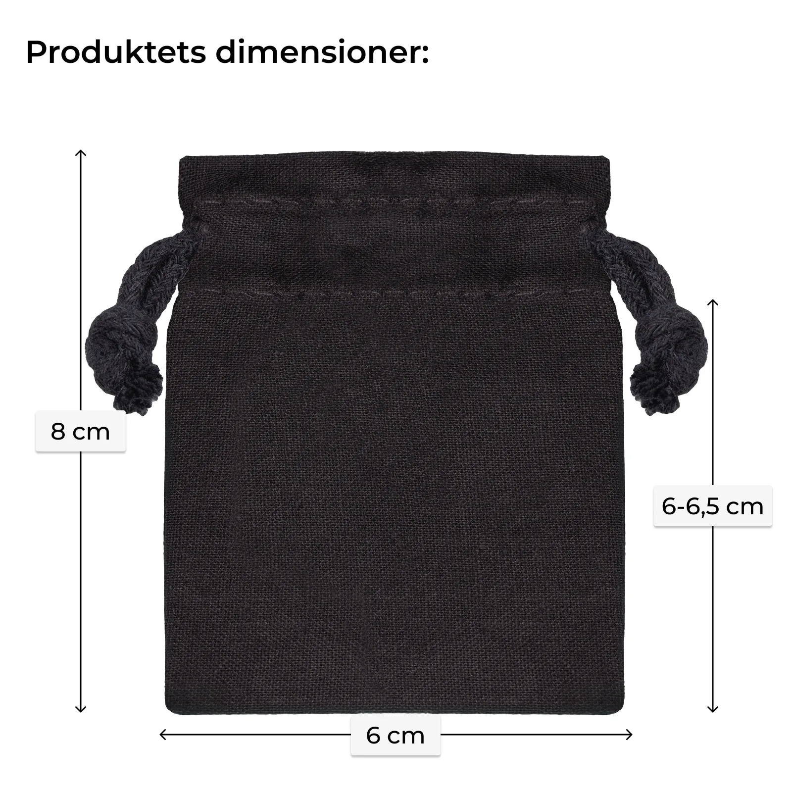 Små, men multifunktionelle poser af elegant bomuld i sort i størrelsen 6 x 8 cm. Pakken, der præsenteres her, består af 10 stk., så et enkelt køb af de praktiske poser rækker i lang tid.