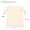 Disse bomuldsposer 8 x 10 cm i naturfarve er små stofposer af 100 % bomuld, ideelle til smykker, gaveartikler og mini-produkter. Sættet indeholder 10 poser med dobbelt bomuldssnor, så posen kan åbnes og lukkes nemt og sikkert. Det kompakte format og den neutrale farve gør dem til en praktisk løsning både til privat brug og til virksomheder, der ønsker en enkel og pæn emballage.