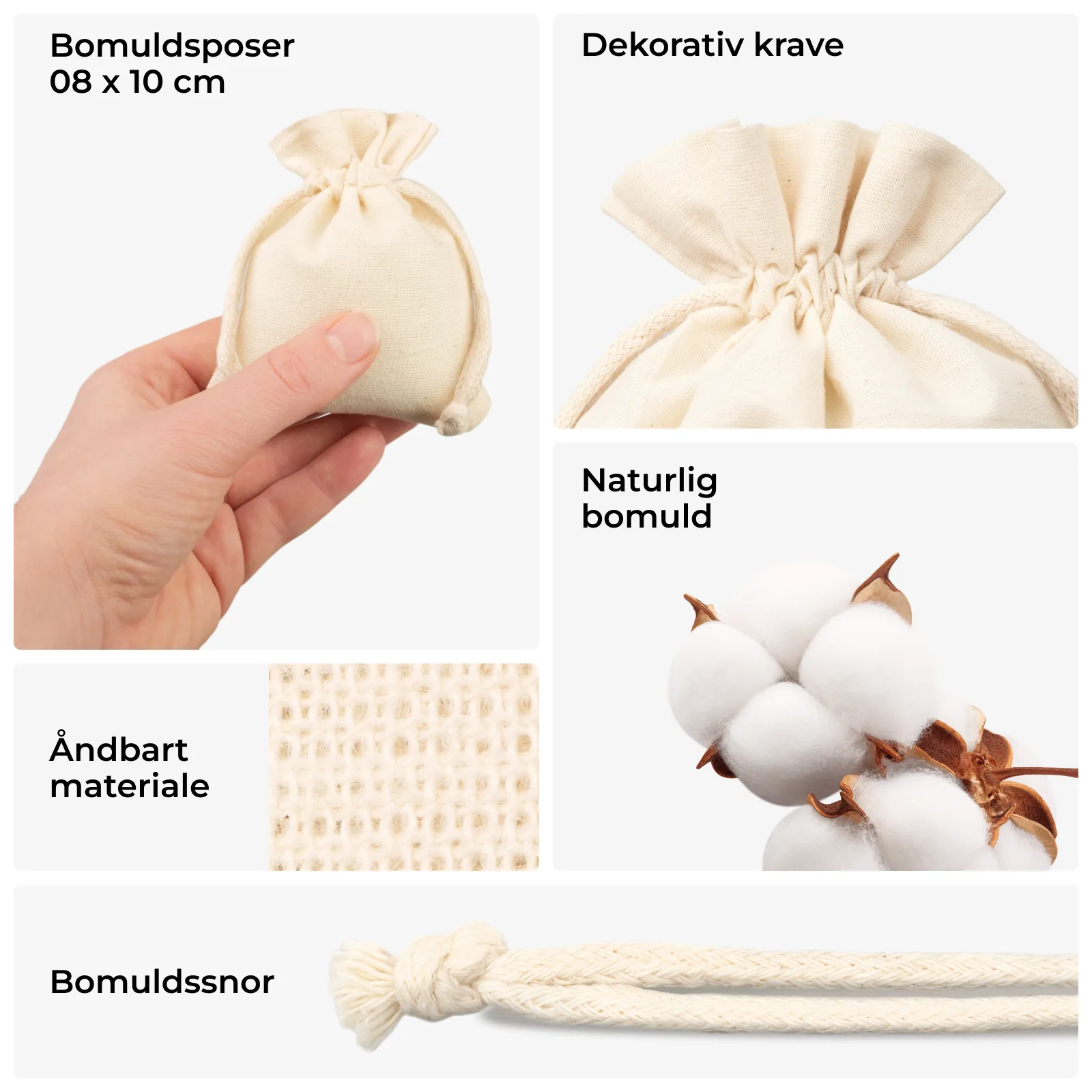 Bomuldsposer 8 x 10 cm - små stofposer til gaver og produkter
