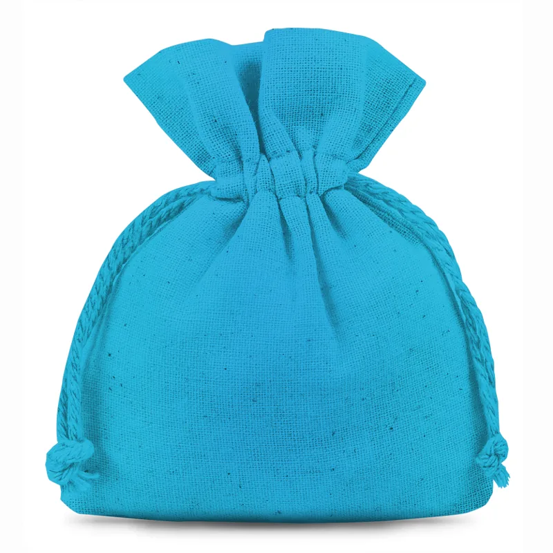 Oplev bomuldsposer i en smuk turkis farve. Du kan brugesnørebåndsposerne som emballage til små gaver, f.eks. smykker.