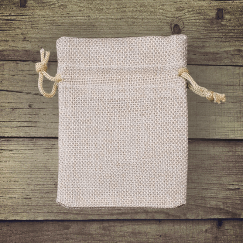 Små, meget alsidige poser af elegant jute i naturlig farve i størrelsen 10 cm x 13 cm. Pakken, der præsenteres her, består af 10 stk., så et enkelt køb kan holde i lang tid.