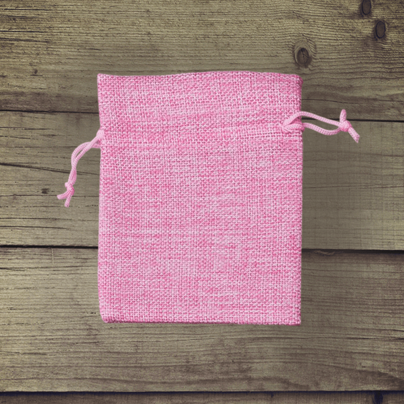 10 juteposer i lyserød i størrelsen 12 cm x 15 cm.