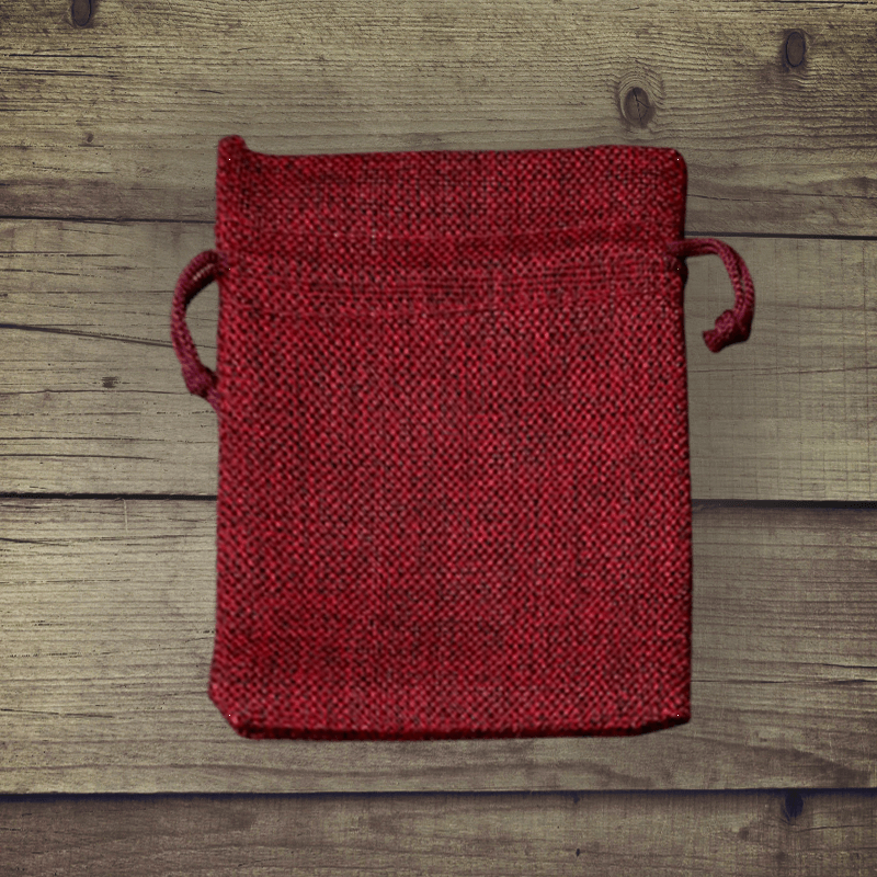 10 stk. jutesække i bordeauxrød i størrelsen 12 cm x 15 cm.