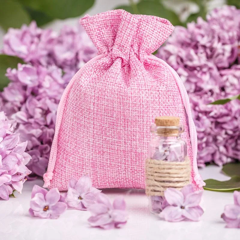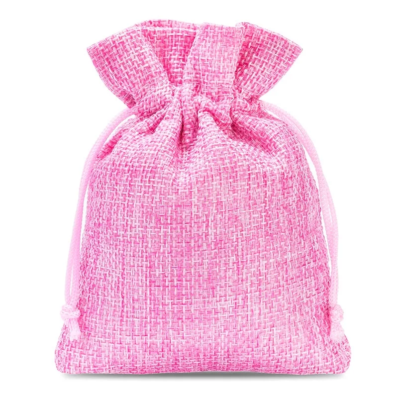 10 juteposer i lyserød i størrelsen 6 cm x 8 cm.