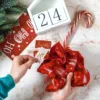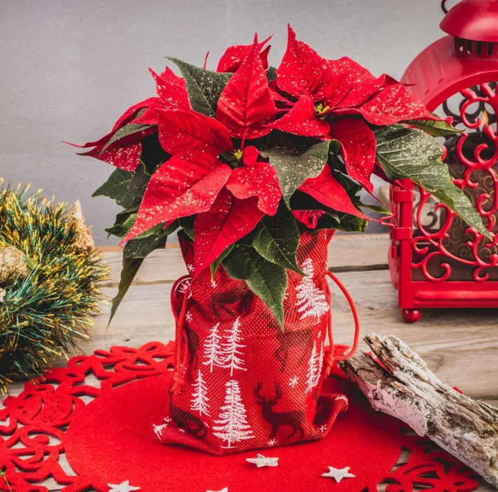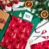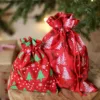 10 stk. Juteposer med tryk 8 x 10 cm - rød / rensdyr