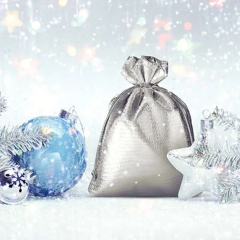 Sæt med 10 metallic poser i sølv, der måler 13 cm x 18 cm.