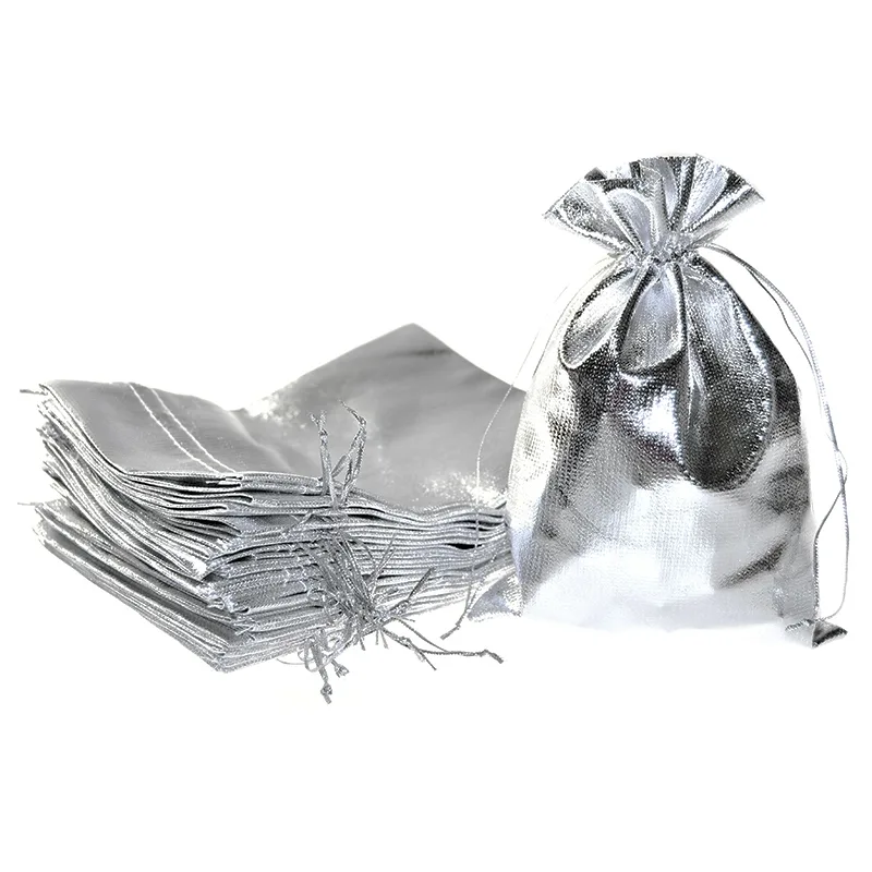 10 stk. Metallisk glans poser 13 x 18 cm - sølv