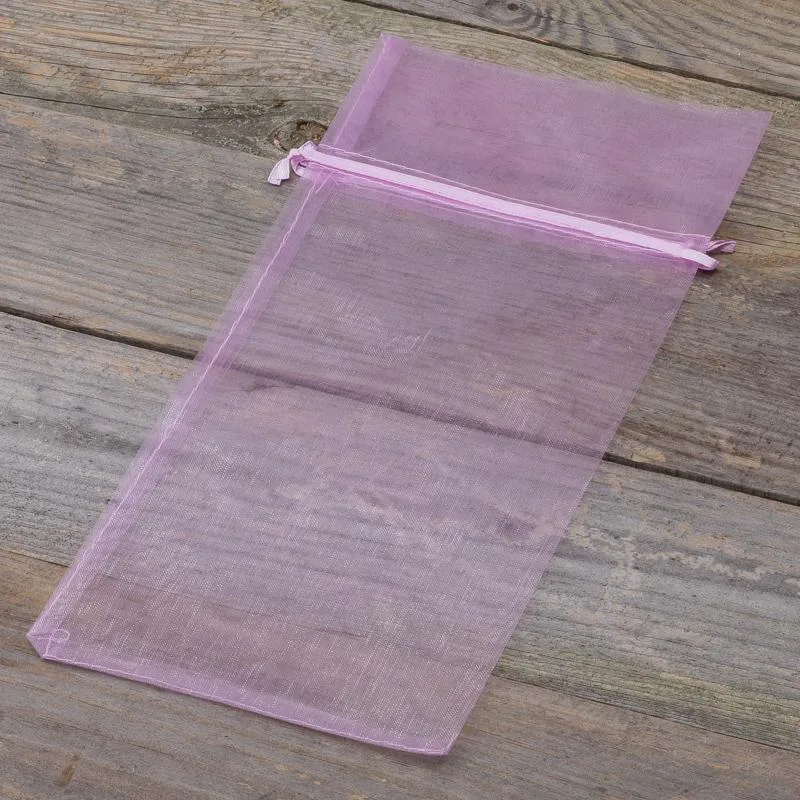 En samling af 10 mellemstore organzaposer på 13 cm x 27 cm, hvis lyse lilla farve passer perfekt til ethvert sted. Dette sæt er meget alsidigt, da det gør det muligt at bruge poserne på mange forskellige måder.