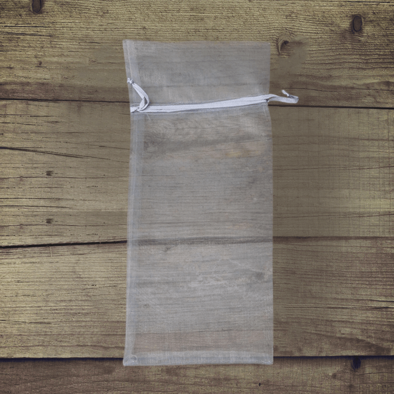 En praktisk pakke med 10 alsidige mellemstore organza-poser i sølv med dimensionerne 15 cm x 33 cm.