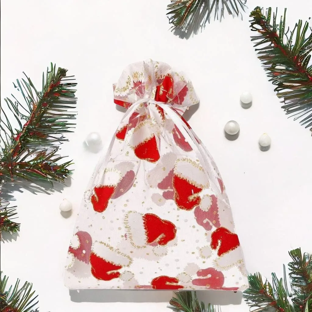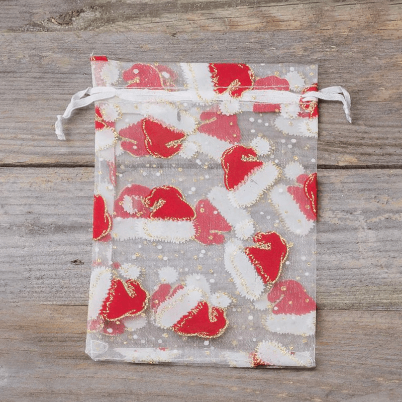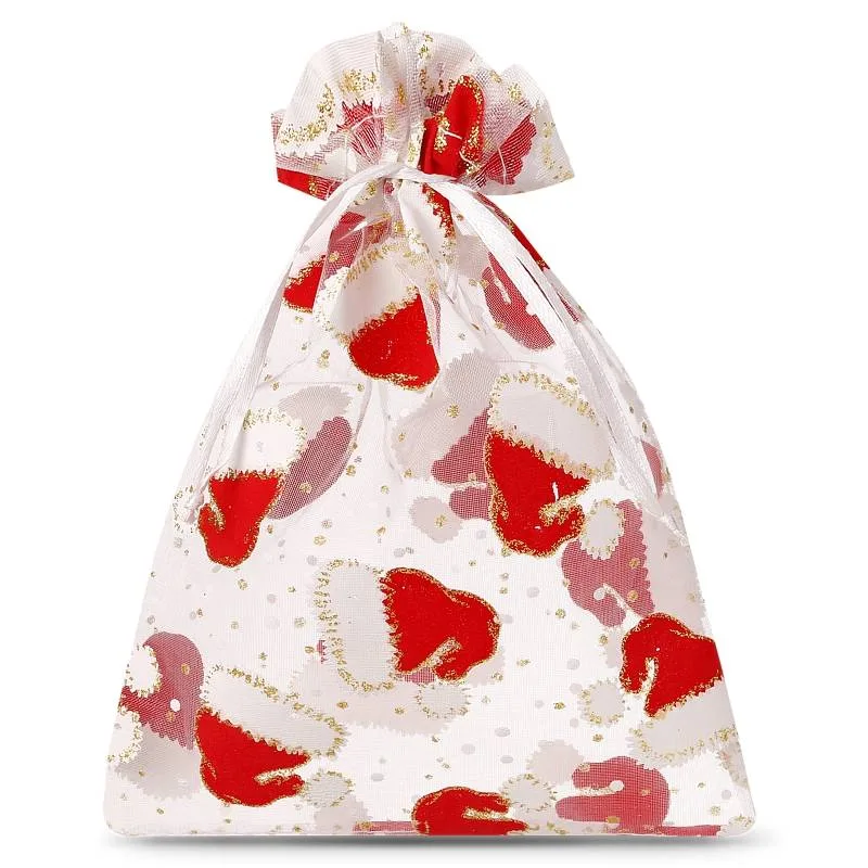 10 stk. Organzaposer med tryk 9 x 12 cm - jul / 1