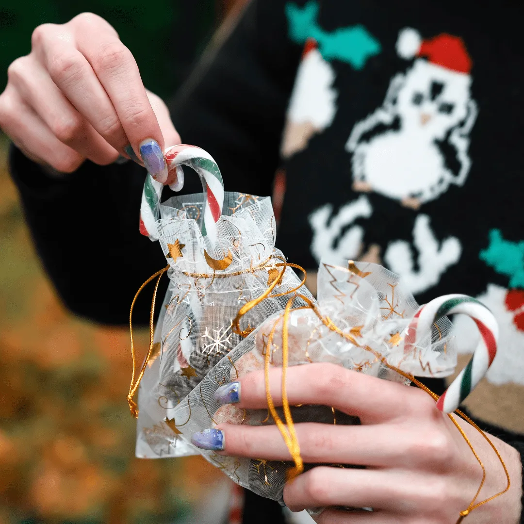 Vi præsenterer en samling af underdimensionerede(8 cm x 10 cm) organza juleposer. Pakken består af 10 dele, og de kan bruges på hundrede forskellige måder. Vi kan også lave poserne med tryk ved at tilføje dit logo direkte på materialet - du skal blot kontakte os.