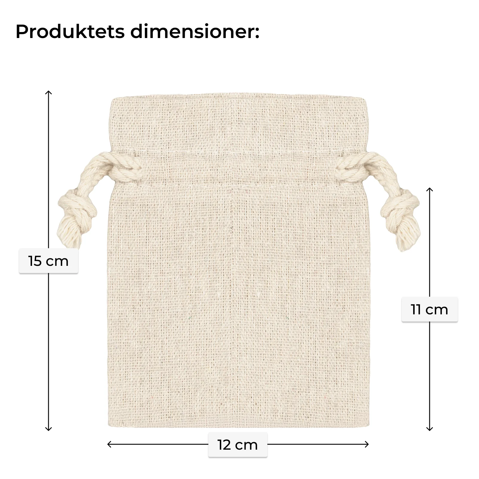 Oplev holdbare og praktiske stofposer i naturligt hør. De små poser, der præsenteres her, måler 12 x 15 cm. Pakken indeholder et sæt med 10 universalposer.