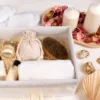Det anvendte stof er behageligt at røre ved og sikrer god luftcirkulation. Samtidig er det også meget holdbart og modstandsdygtigt over for slid og krølning. Her tilbyder vi stofindpakninger med bomuld, som efterligner naturligt linned i både tekstur og stoffarve. Tilføjelsen af syntetiske fibre gør dette til en virkelig holdbar, genanvendelig pakke!