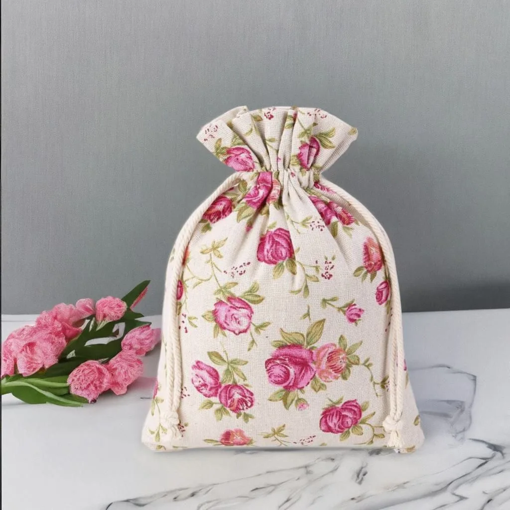 10 stk. Poser à la linned med trykt 13 x 18 cm - naturlig / roser