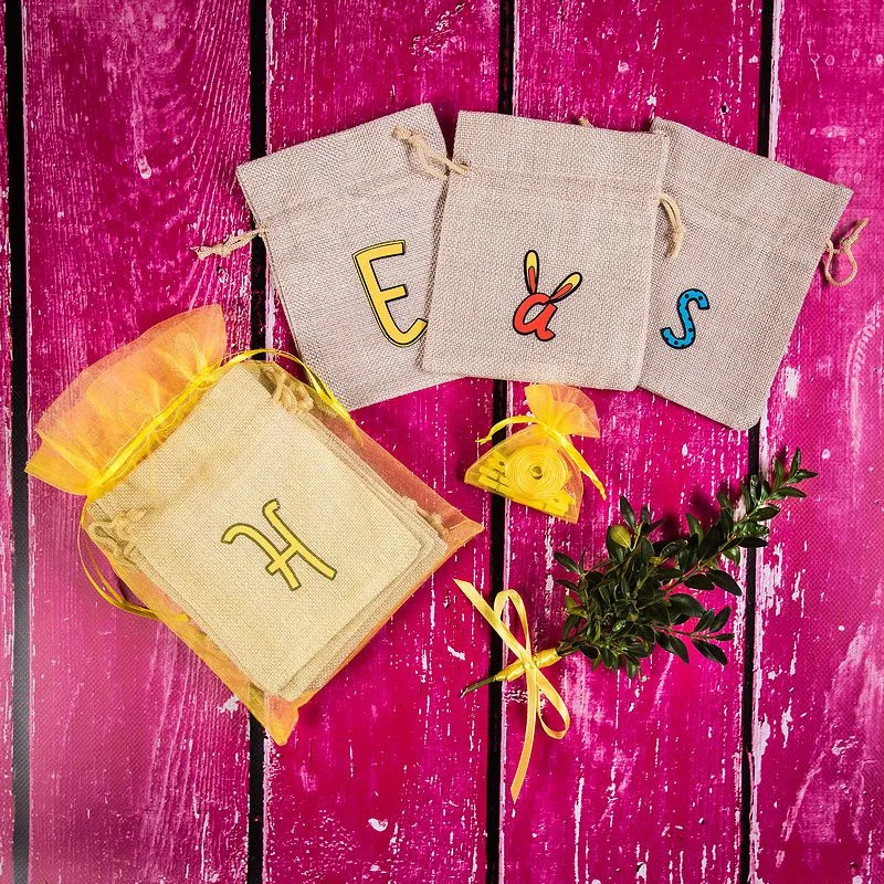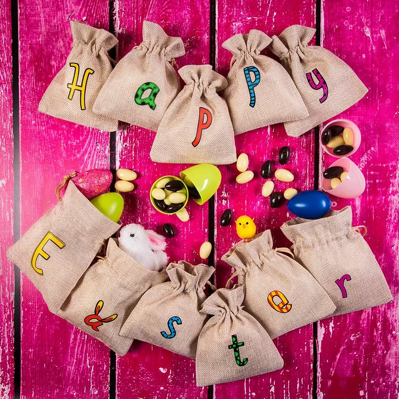 11 stk. Påske juteposer 12 x 15 cm - naturlig lys