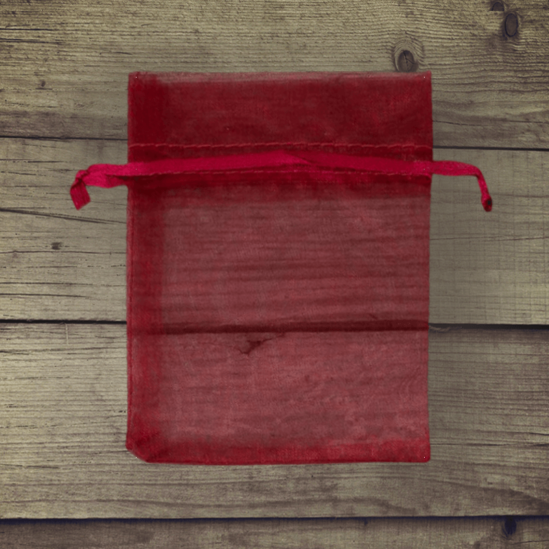 Et sæt små organza-poser i bordeauxrød, der måler 10 cm x 13 cm. Denne praktiske pakke indeholder 25 stk., så et enkelt køb rækker længe.