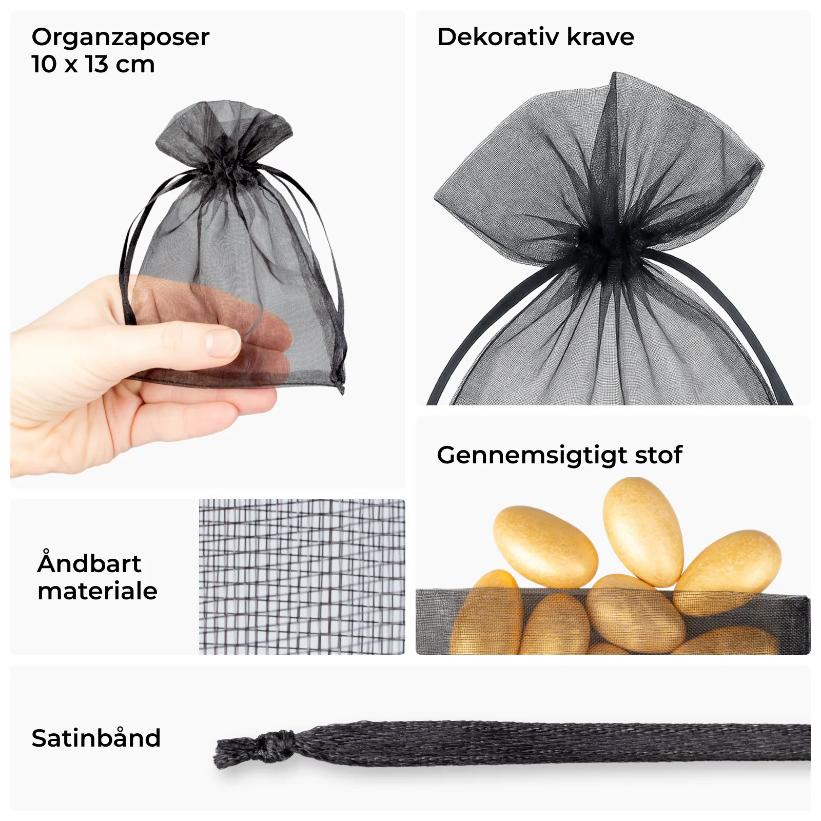 Organzaposer (også kaldet organza-poser ) er den perfekte måde at pakke både små ting og mange småting på.