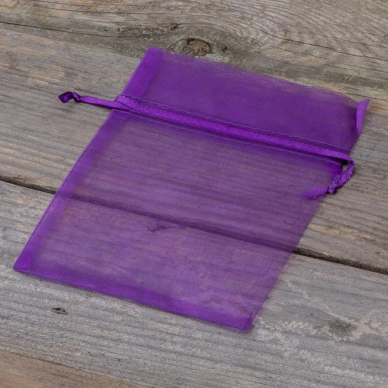 En praktisk pakke med små organza-poser i mørklilla. Størrelsen på en enkelt pose er 11 cm x 14 cm, og hele sættet består af 25 dele. Dette nummer garanterer, at enhver samling kan opbevares i dem.