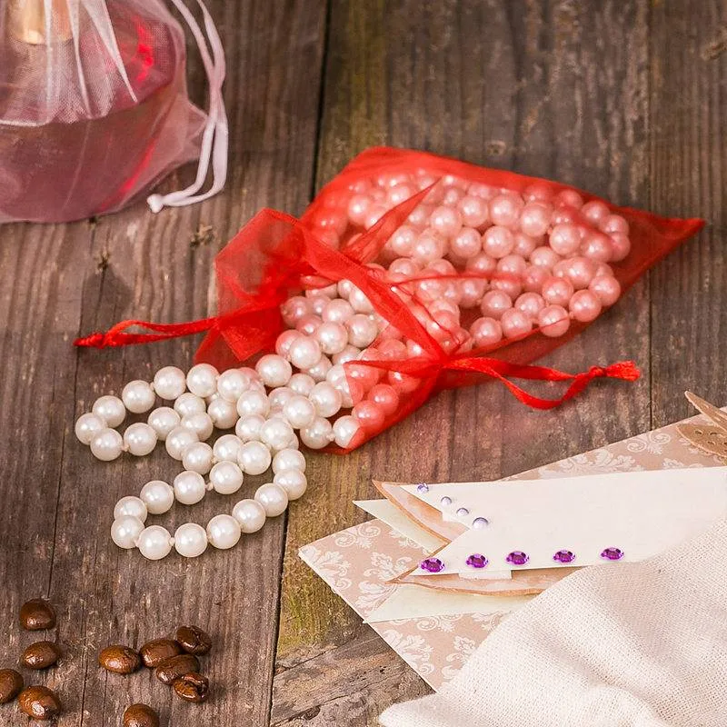 En samling af 25 mellemstore organzaposer i 12 cm x 15 cm, hvis røde farve passer perfekt til ethvert sted. Dette sæt er meget alsidigt, da det gør det muligt at bruge poserne på mange forskellige måder.