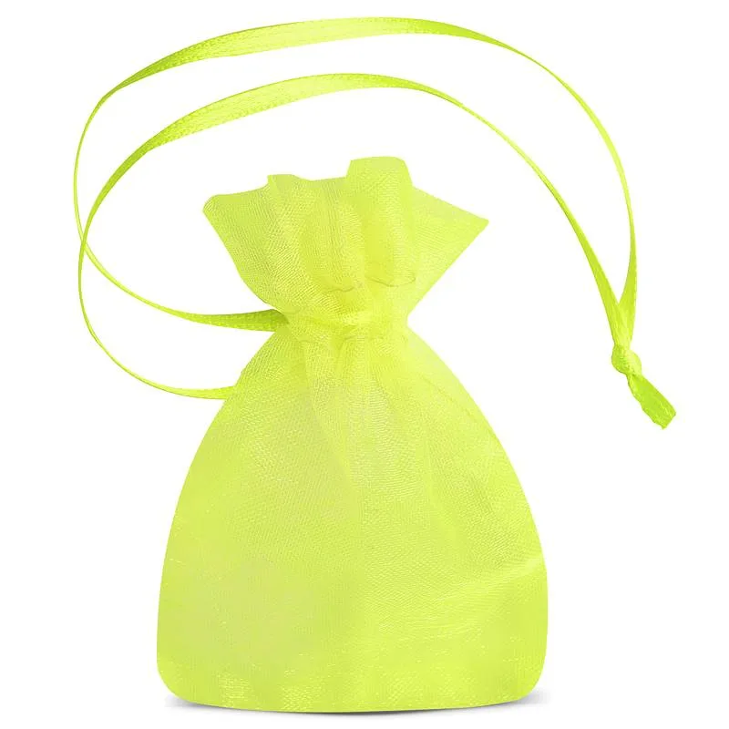 Et sæt med 25 organza-poser i neongrønt med et meget bredt, praktisk anvendelsesområde.