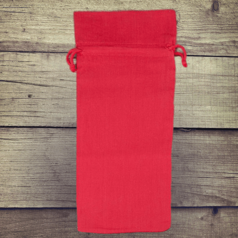 Her kan du købe røde aflange bomuldsposer i størrelsen 16 x 37 cm. Du kan bruge de poser, der tilbydes her, bl.a. som en økologisk gavepose til f.eks. vin eller gløgg.