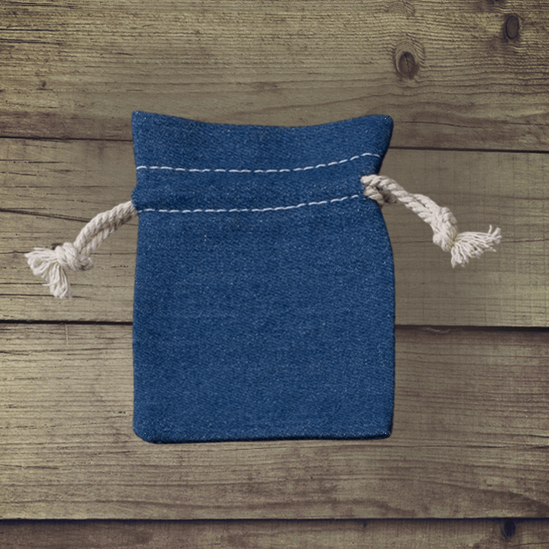 Et sæt af 3 poser lavet af originalt denimstof, størrelse 10 x 13 cm, hvis blå farve passer perfekt til ethvert sted. Dette sæt er meget alsidigt, da det gør det muligt at bruge poserne på mange forskellige måder.