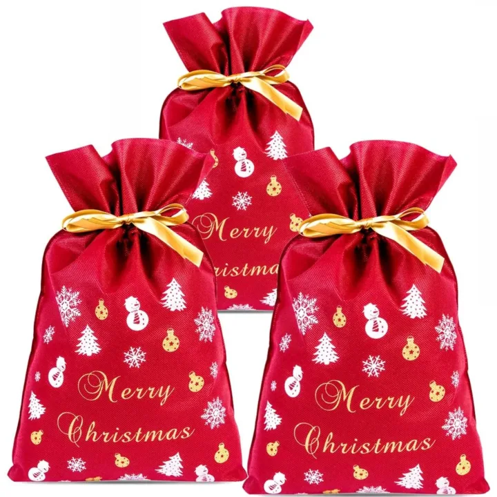 Sæt med 3 non-woven poser med julemotiv 20x30 cm - opakning til små julegaver og branding til jul