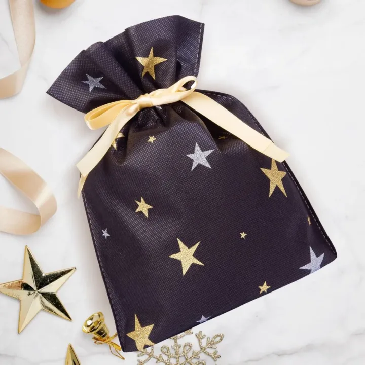 Vil du pakke dine julegaver ind med stil og samtidig styrke brandets visuelle identitet? Disse non-woven juleposer med stjernemotiv kombinerer æstetik og funktion - ideelle til virksomheder, der ønsker at gøre indtryk i højtiden.