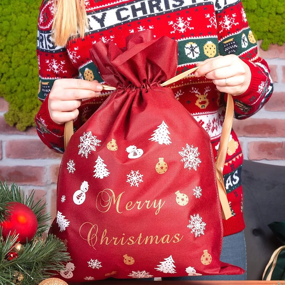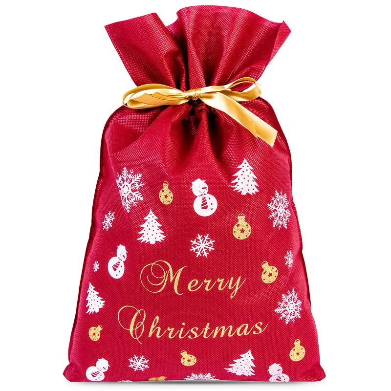 Det er ikke bare en pose - det er en del af oplevelsen. Med disse store non-woven juleposer kan du nemt pakke dine firmagaver ind og samtidig skabe det der lille ekstra, som folk husker. Den varme farve, det festlige tryk og guldbåndet gør gaven både indbydende og eksklusiv - uden at du skal bruge tid på papir, tape og pynt.