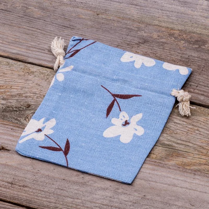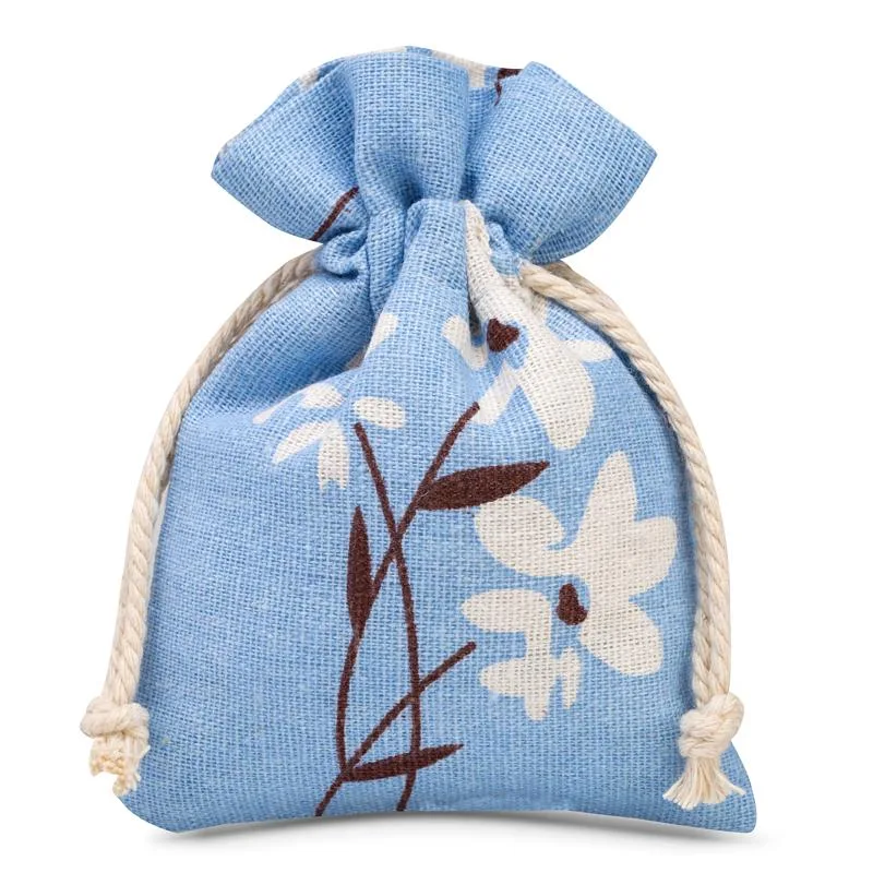 3 stk. Poser à la linned med trykt 12 x 15 cm - blå blomster