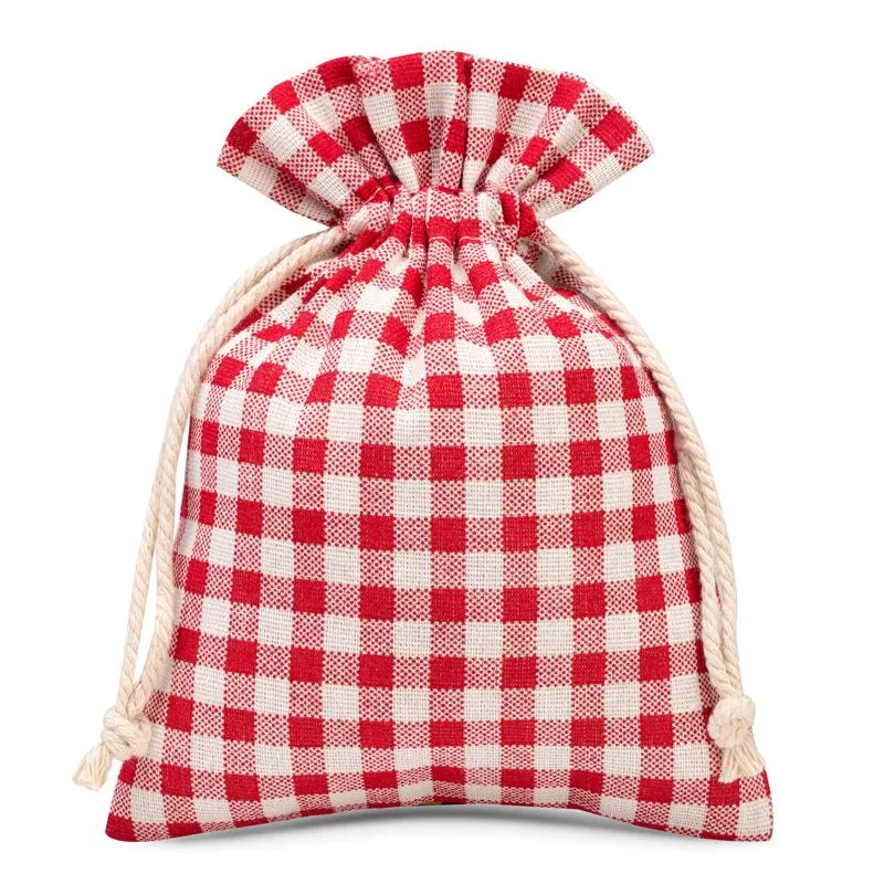 3 stk. Poser à la linned med trykt 13 x 18 cm - naturlig / rød kontrol
